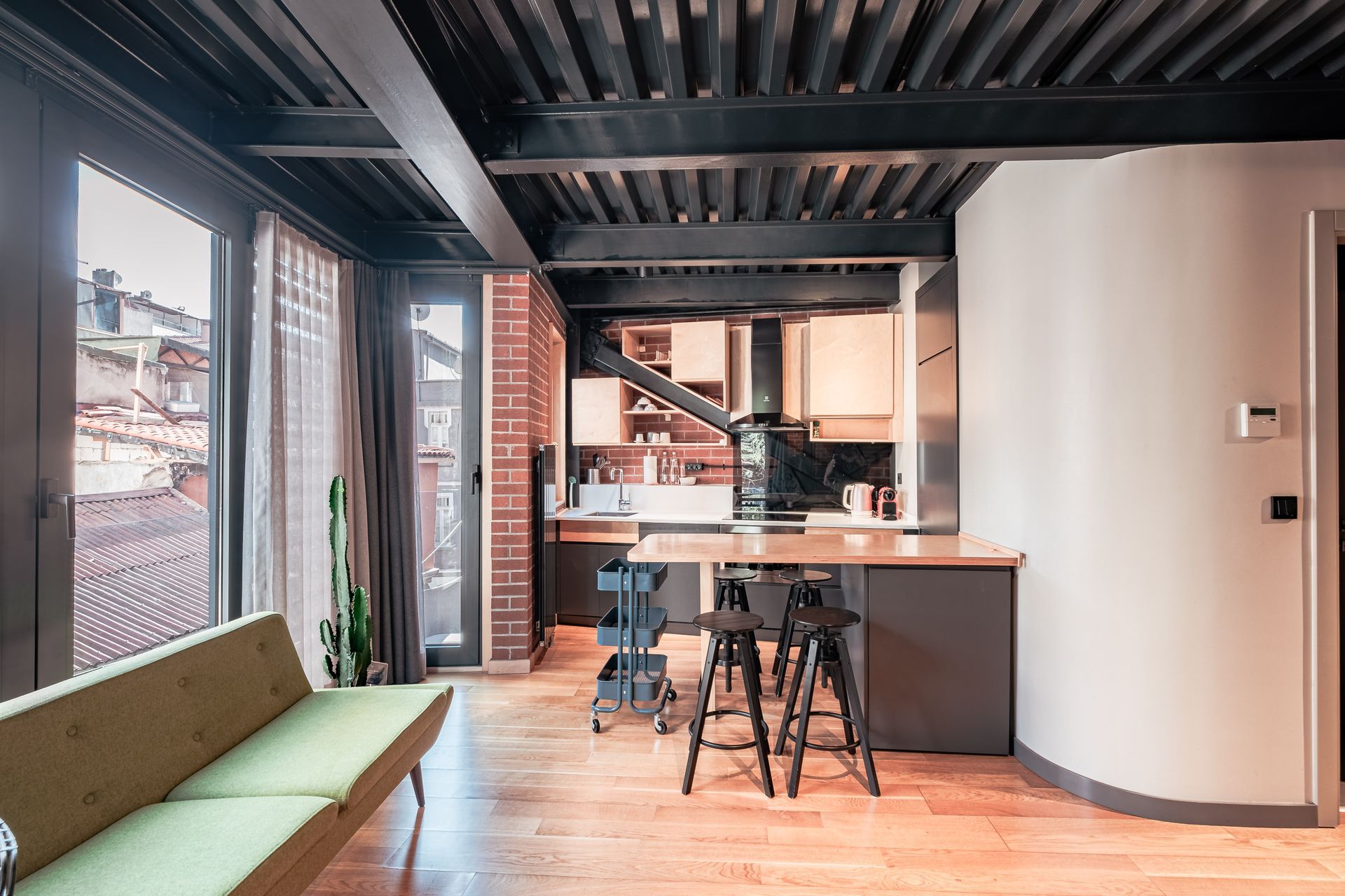 Follow the cobblestoned Çukurcuma street that many call the most beautiful street in Istanbul. You will find our leading-edge, modernistic building. Step inside and easily self check-in. Enjoy the fully equipped kitchen for the most delicious meals and chill in the comfy living area. The neighborhood offers you to experience the city's rhythm, hip cafes&restaurants and