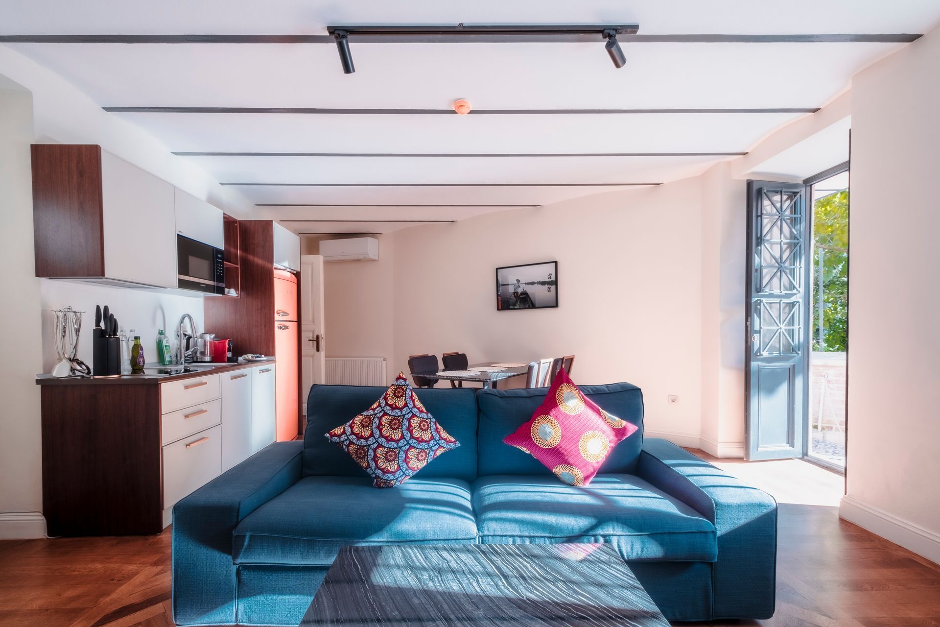 A luminous and private courtyard will welcome you. Enjoy the fully equipped kitchen for the most delicious meals and Netflix & Chill in the comfy living area. The neighborhood offers you to experience the city's rhythm and hip cafes & restaurants. Best of all,
